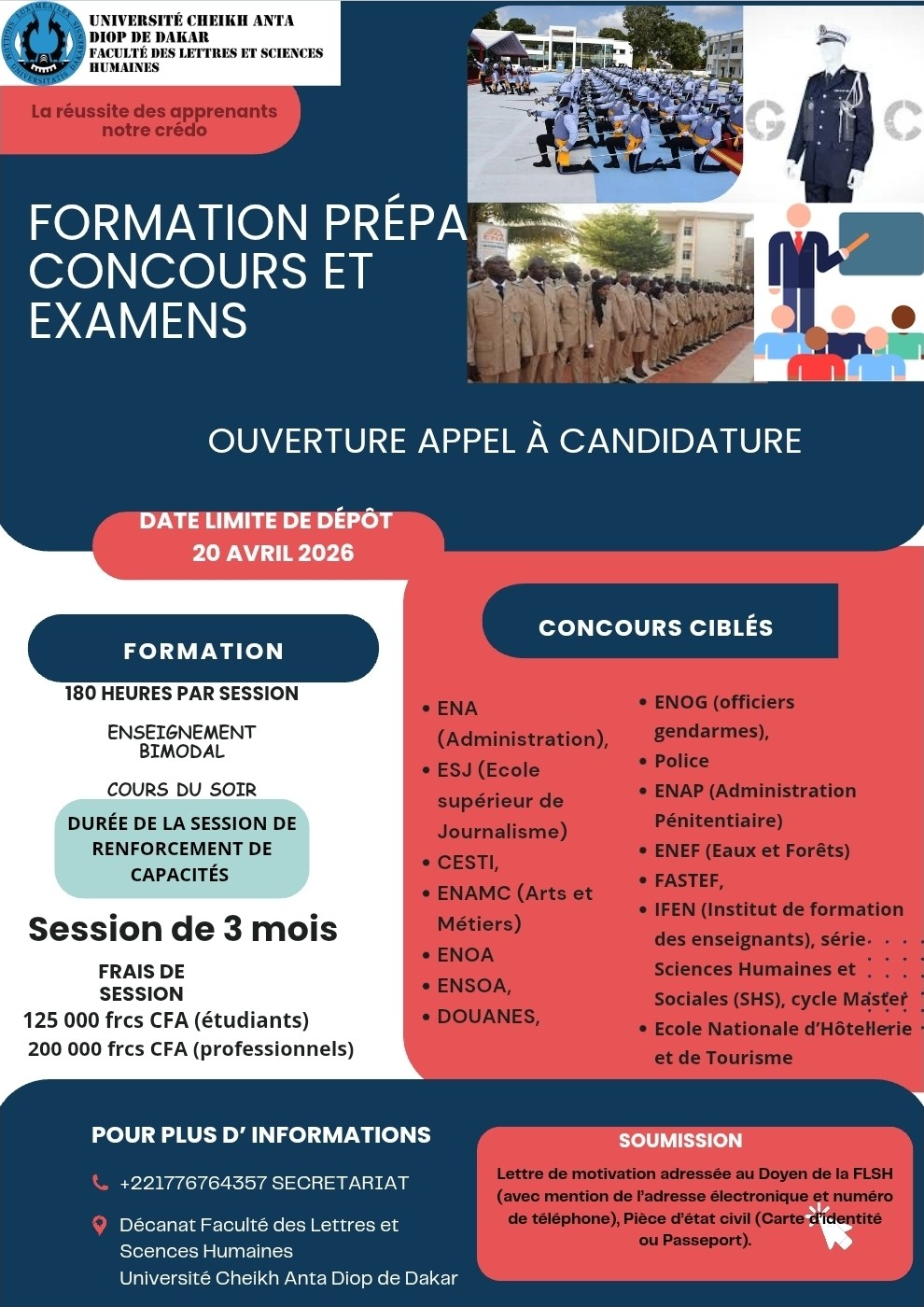 NB : Les inscriptions se poursuivent jusqu’au 20 avril 2026. Contact: Mme WADE 776764357.